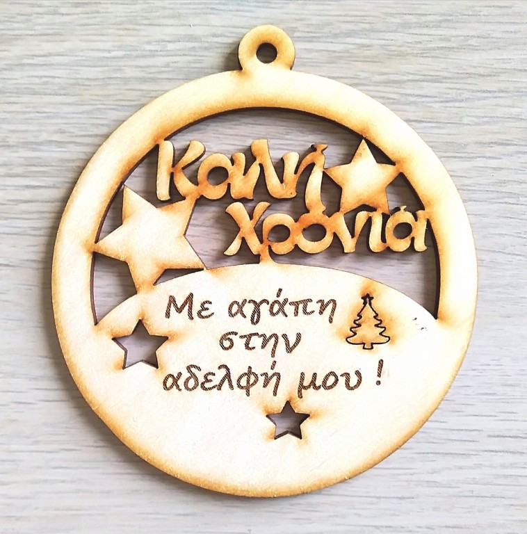 Ξύλινη Χριστουγεννιάτικη μπάλα στην καλύτερη αδερφή
