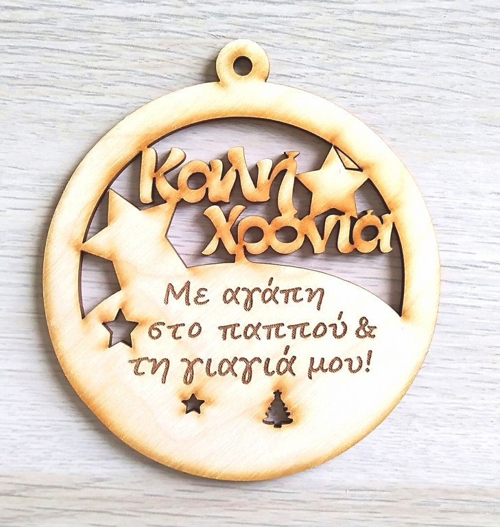 Ξύλινη Χριστουγεννιάτικη μπάλα στον παππού και στην γιαγιά